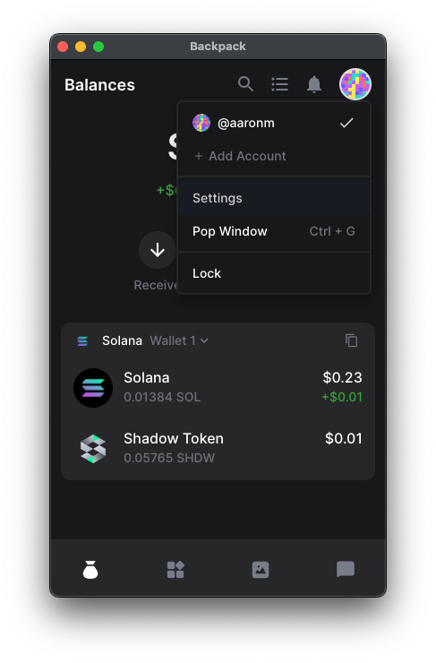 Step 1: Open your Backpack wallet and click open the Settings menu from the top right corner.